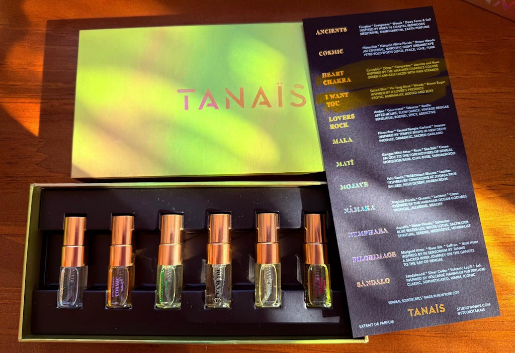 Experience the evocative olfactory journey of Studio Tanaïs, a stunning 12 scent journey features our ENTIRE perfume collection, handcrafted by Tanaïs in our NYC studio.